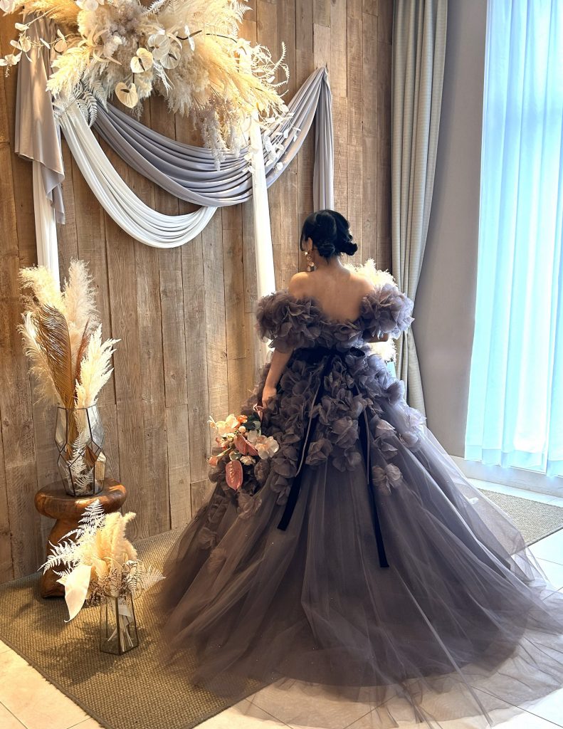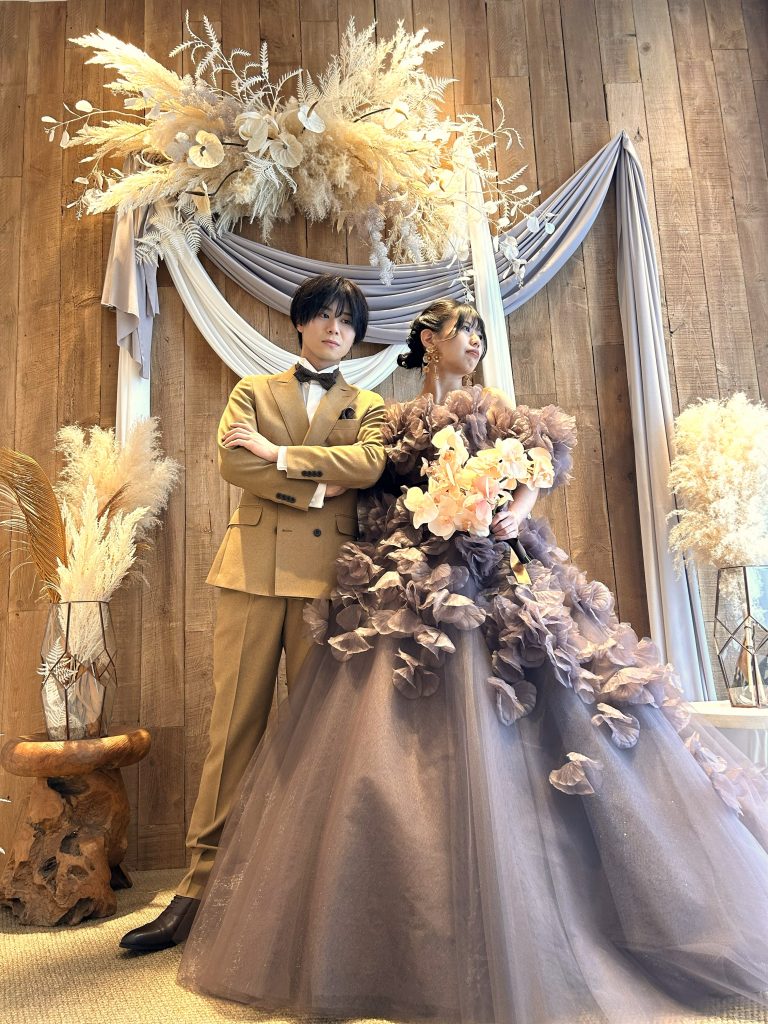 キャメルブラウンはカラードレスのとバランスもとりやすいお色味です.