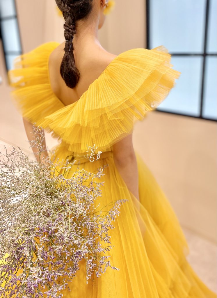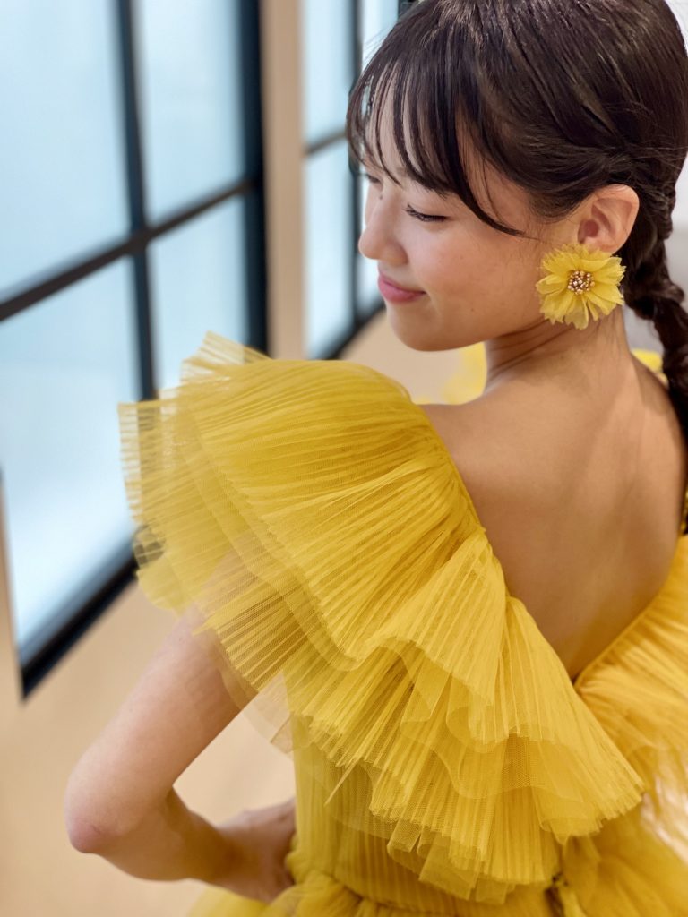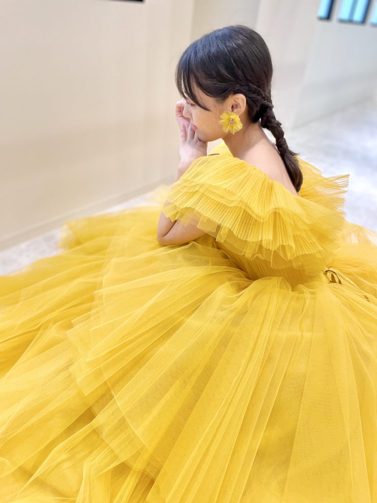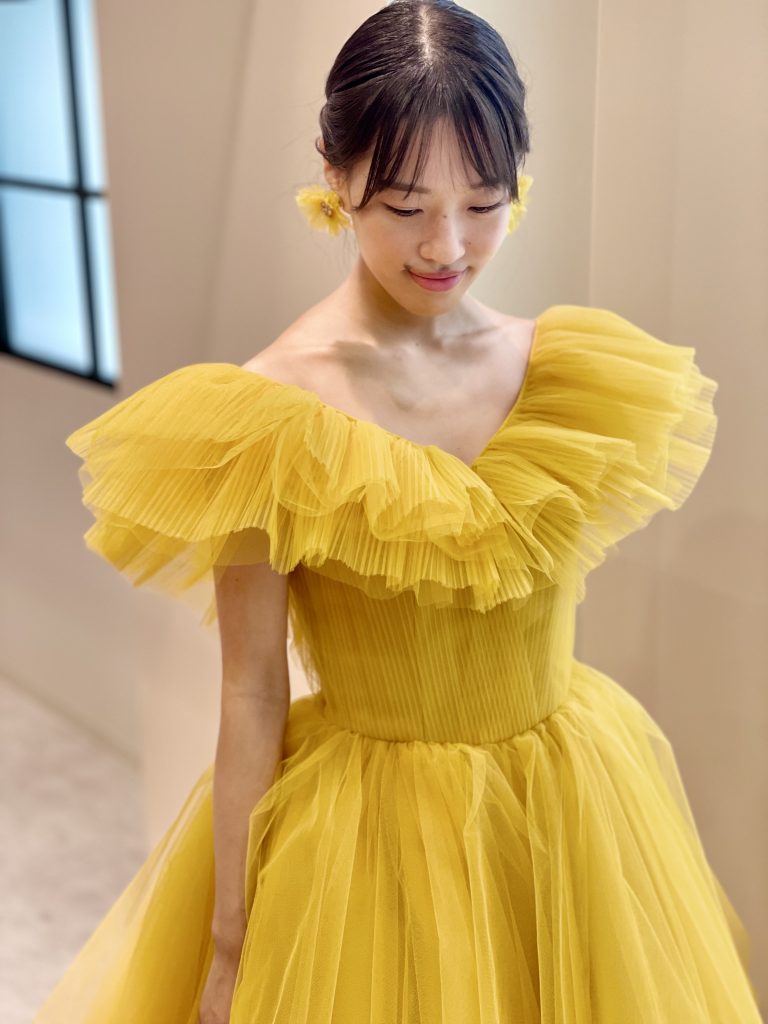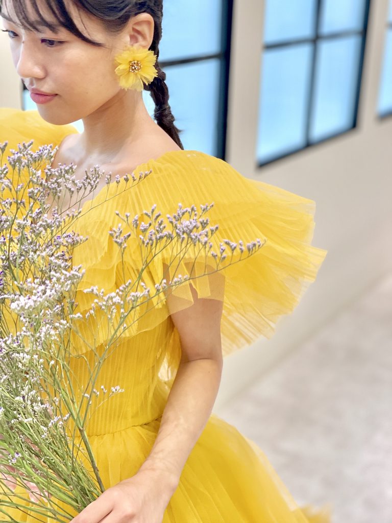そんなイエローのカラードレスが持つ意味は、幸福、希望、上品.