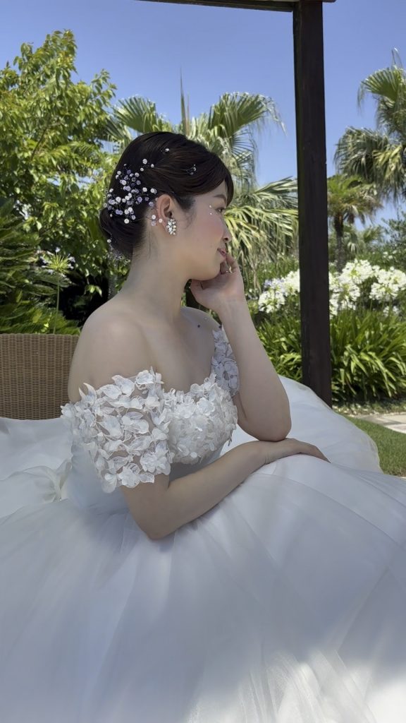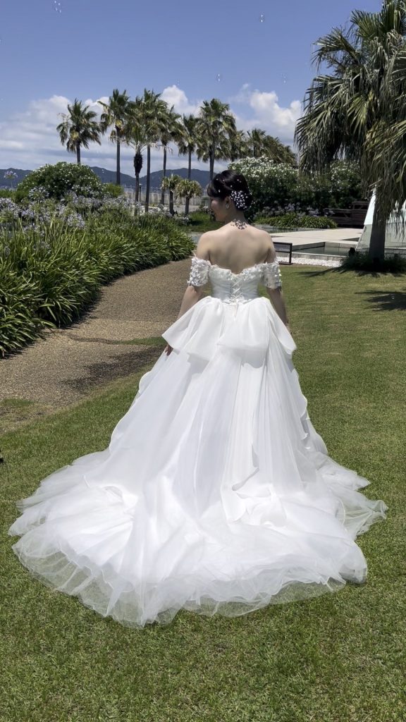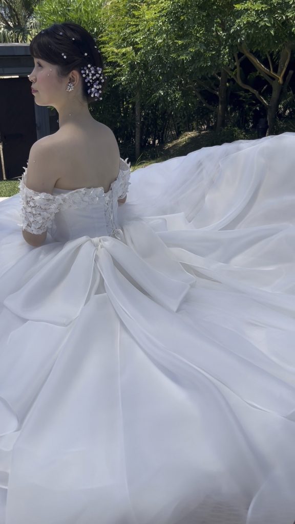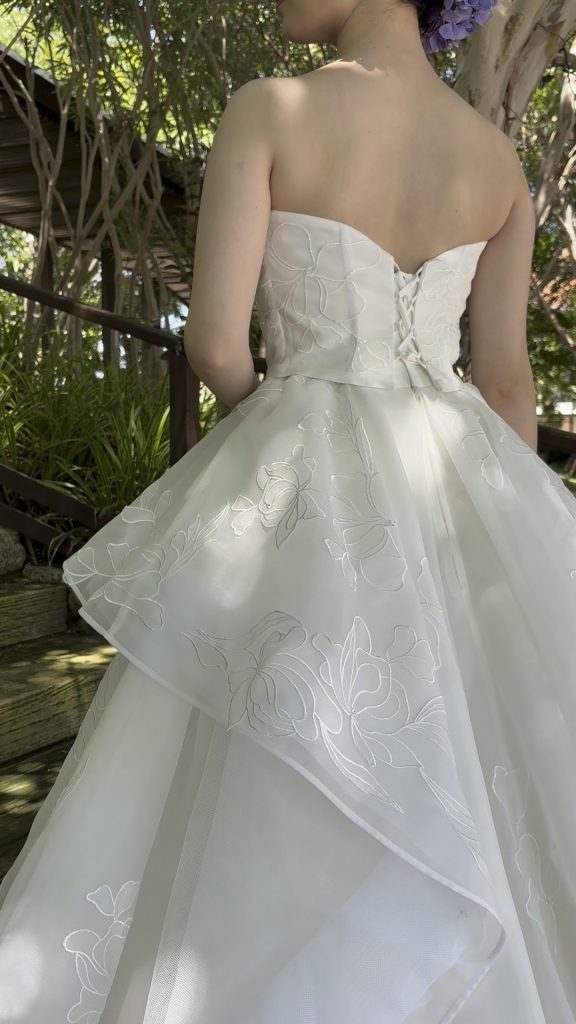 レースやビーディングはどこから見てもきれいに見えるように配置や数にもこだわってデザインしました.